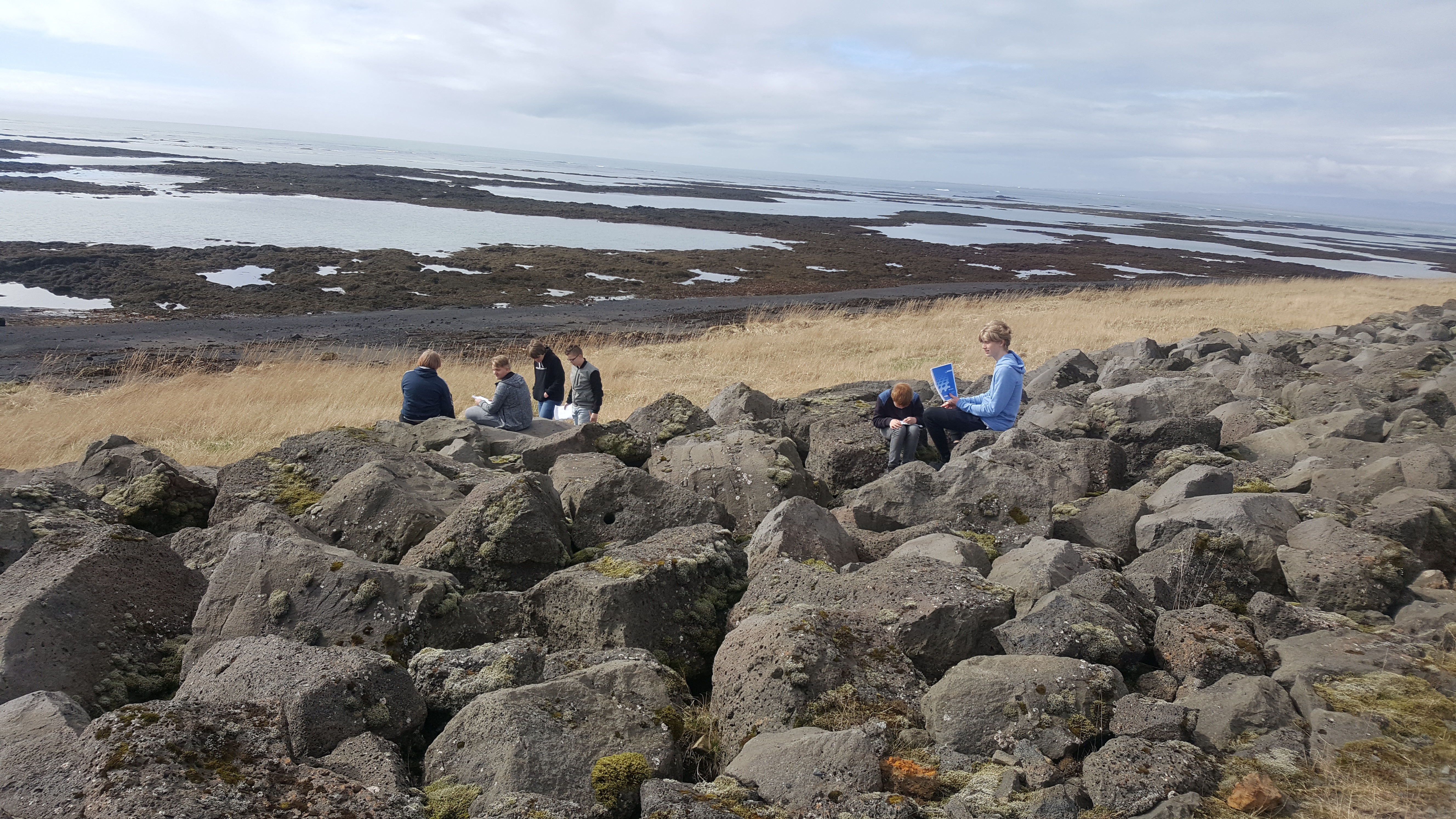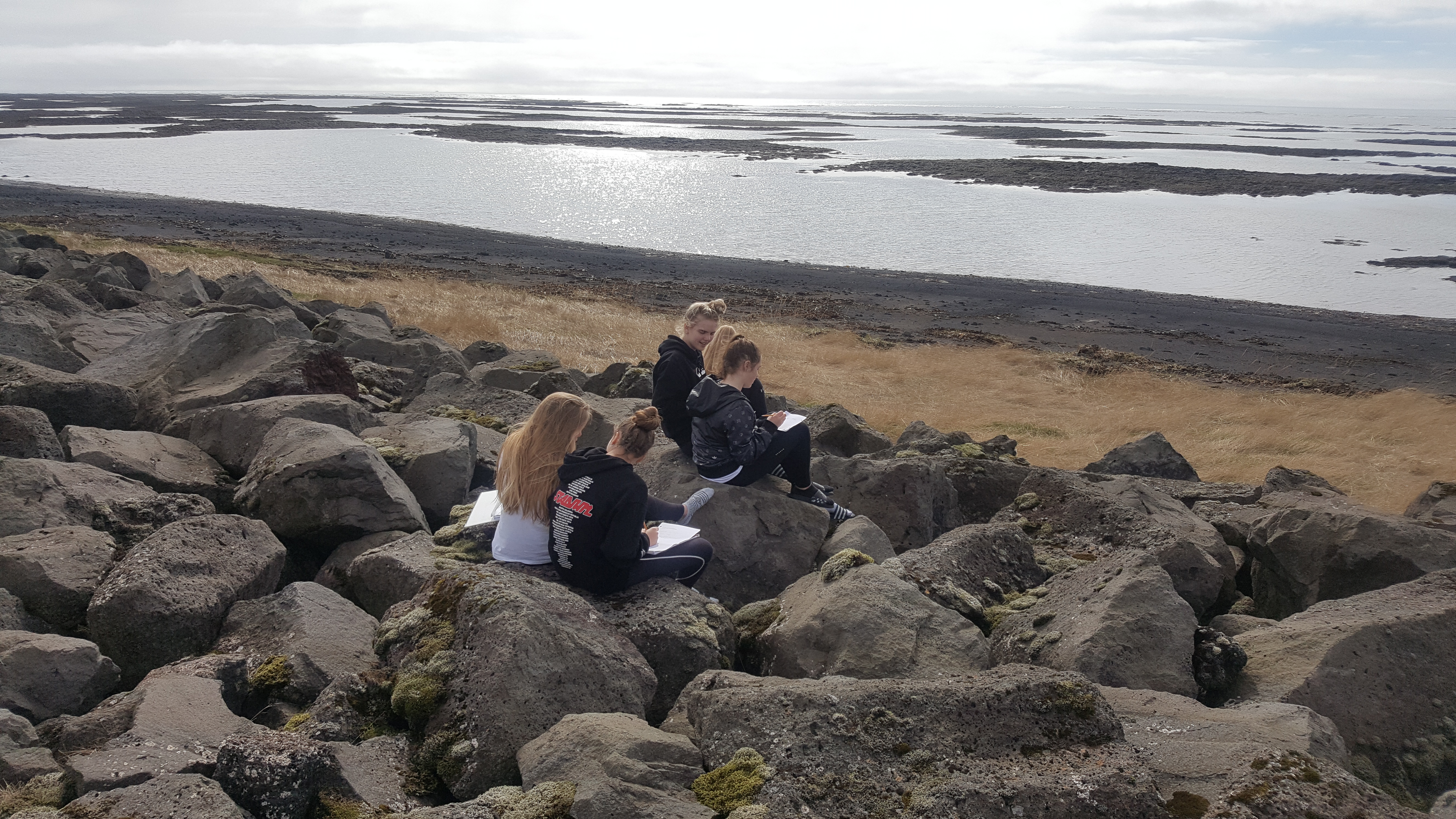 Nemendur 9. bekkjar stunduðu kveðskap í íslenskukennslu á dögunum með kennara sínum ,Kareni Heimisdóttur. Skáldskapurinn fór fram við ströndina í vorblíðunni sem gleður okkur þessa dagana. Hér má sjá hluta afrakstur þeirrar vinnu, ljóðið heitir Í söltum sæ og er eftir Sindra Ragnarsson.